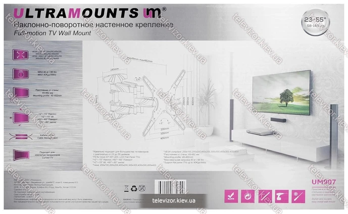 Ultramounts UM907 (черный) - купить недорого, кронштейн и крепление для телевизора или мониора с бесплатной доставкой по Киеву и всей Украине | |