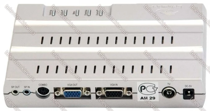 В комплекте | TV-тюнер; пульт ДУ (с батарейками); подставка; кабель 3.5мм аудио стерео; кабель VGA; разветвитель MiniDIN 8 - RCA/S-Video; руководство |