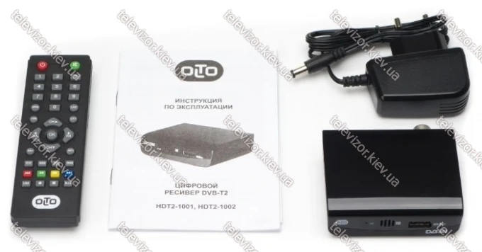В комплекте | Ресивер OLTO HDT2-1001; Пульт ДУ с батарейками; Адаптер питания; Инструкция |