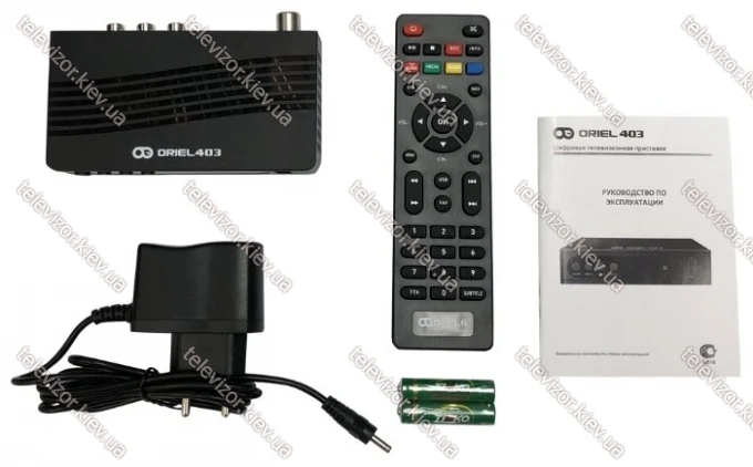 В комплекте | приставка Oriel 403 (DVB-T2/C); Пульт ПДУ-6 с батарейками; Блок питания 5В/2A; Руководство по эксплуатации |