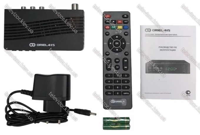 В комплекте | приставка Oriel 415 (DVB-T2/C); Пульт ПДУ-6 с батарейками; Блок питания 5В/2A; Руководство по эксплуатации |
